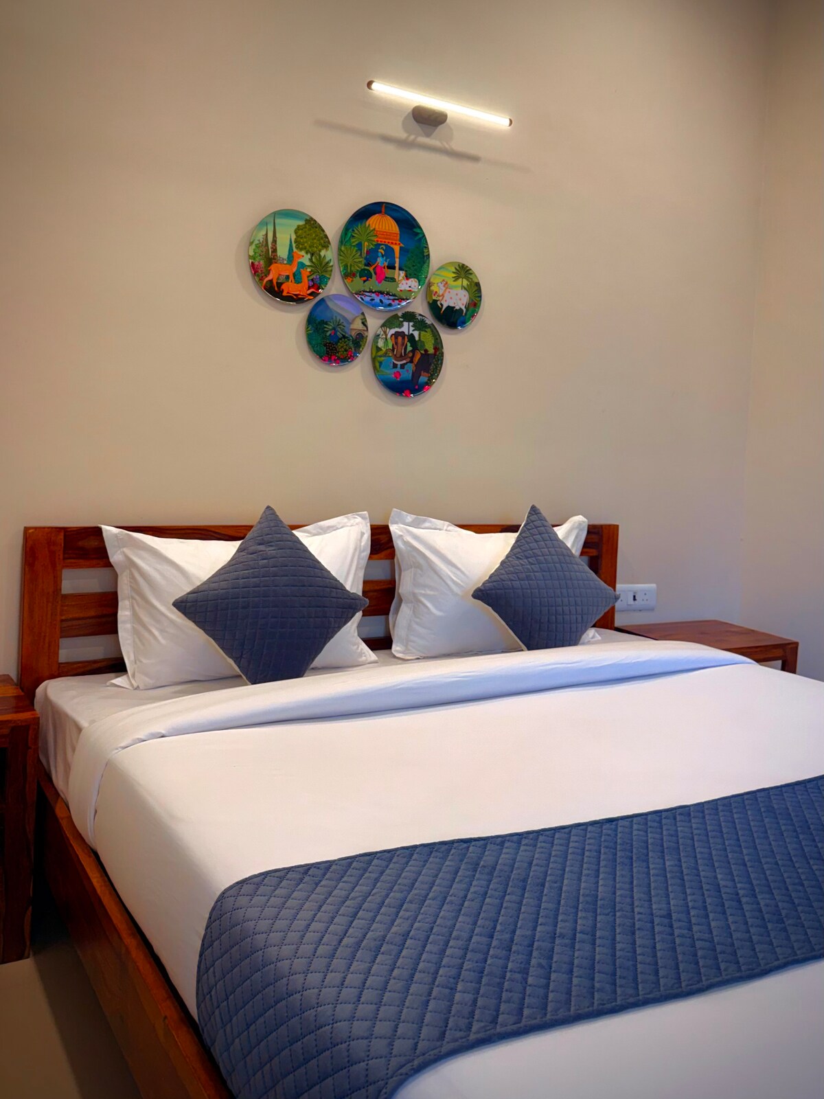 The space Tucked inside a secure premium gated society near Prem Mandir, ISKCON and Banke Bihari Ji, this home was thoughtfully designed for families, spiritual travellers, and devotees seeking a calm, uncluttered space to rest between temple visits and darshans.
